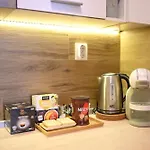 Є повністю обладнана кухня з кавоваркою, а також електрочайником, холодильником і кухонним приладдям для самостійного приготування їжі. Апартаменти розташовані досить близько до автовокзалу City Hospital.